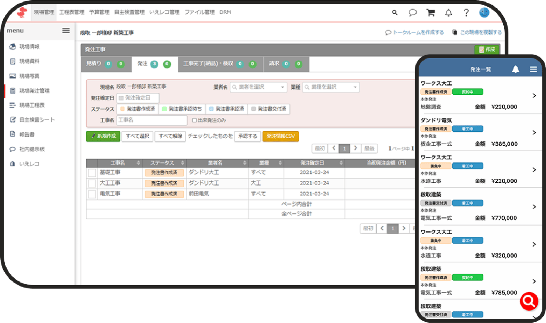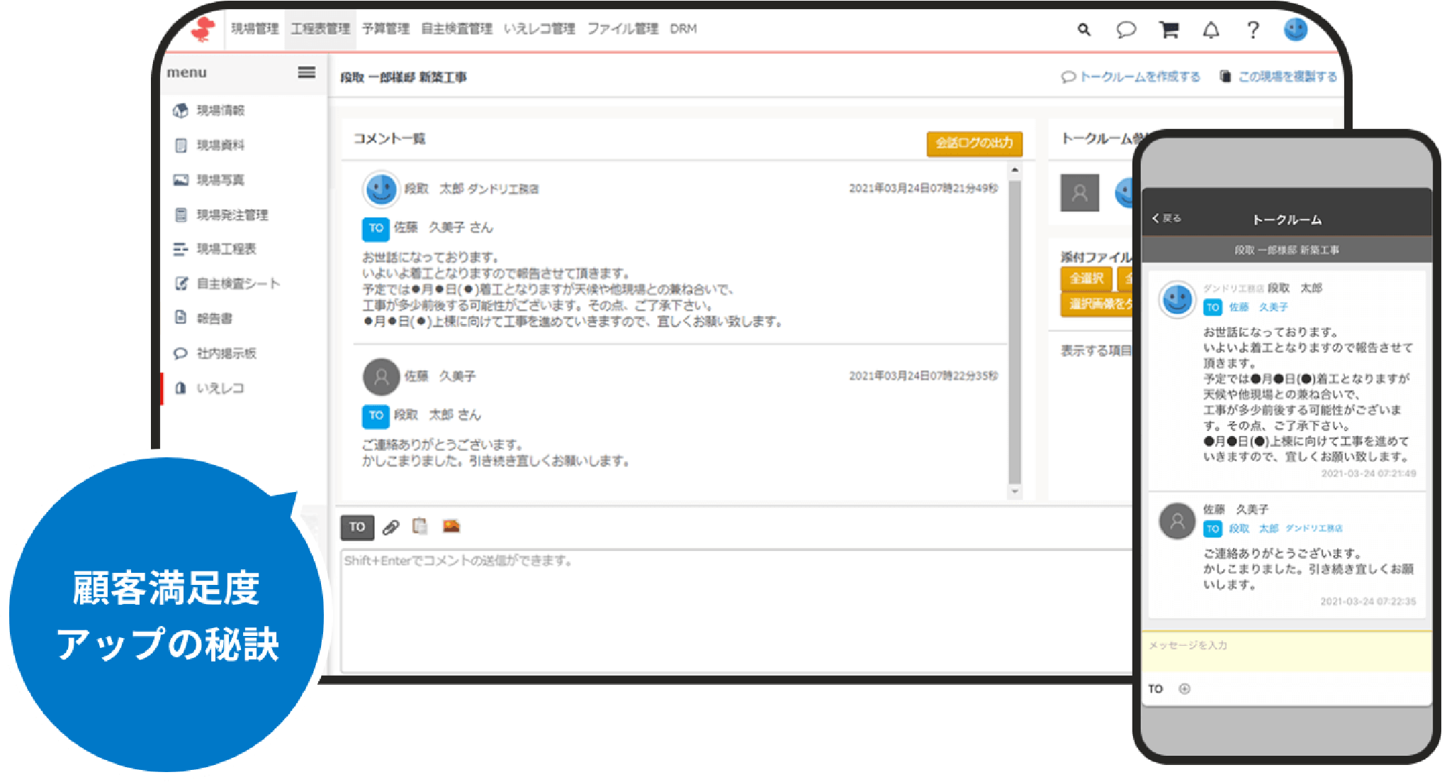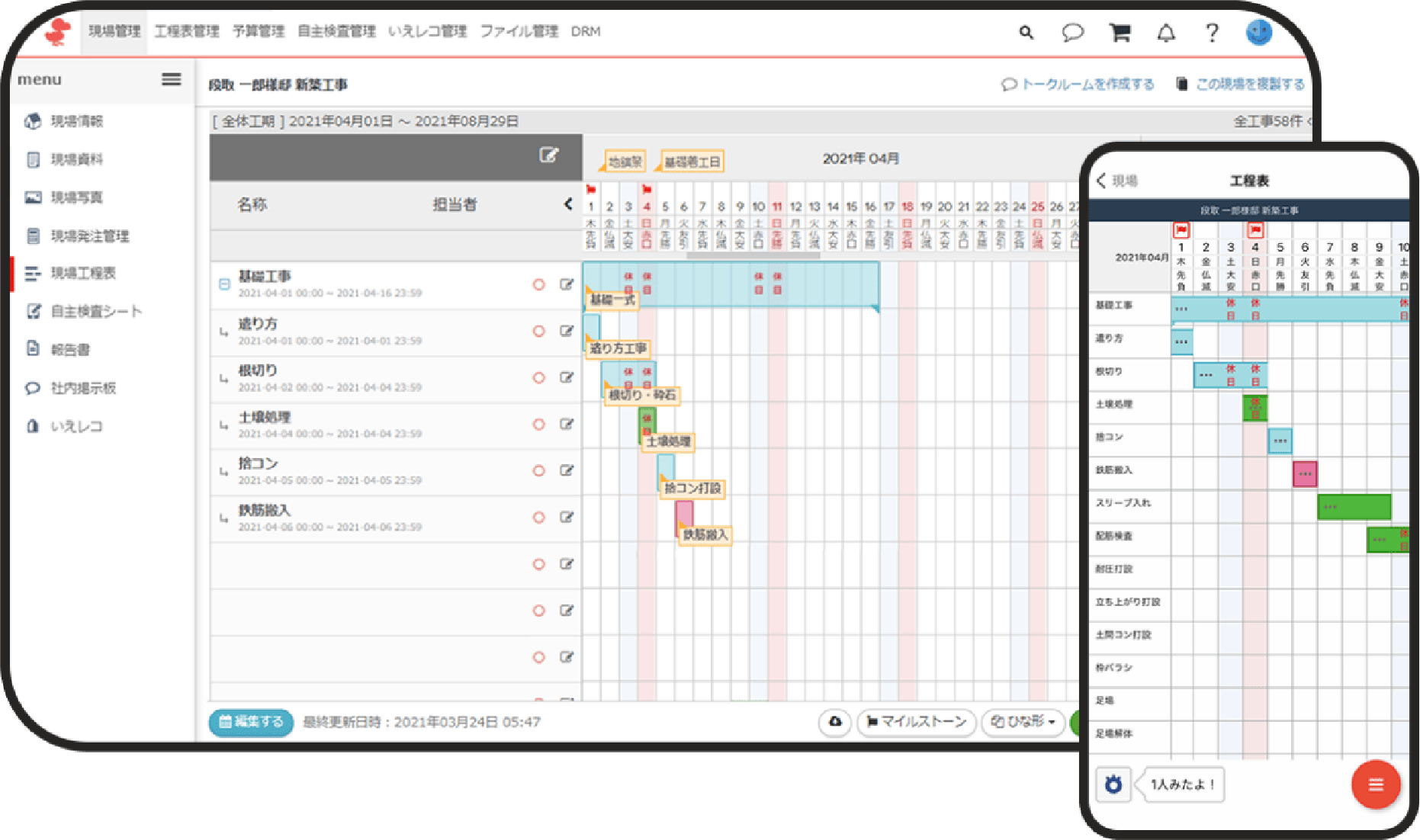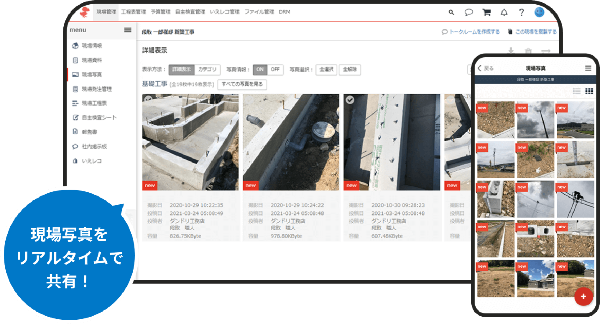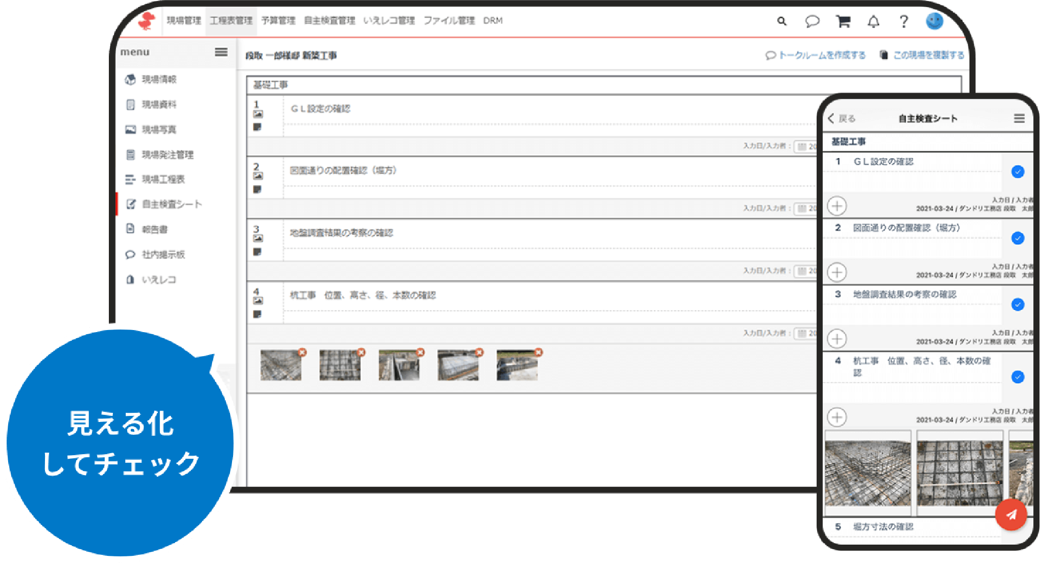 施工現場の情報と進捗を管理することができます。