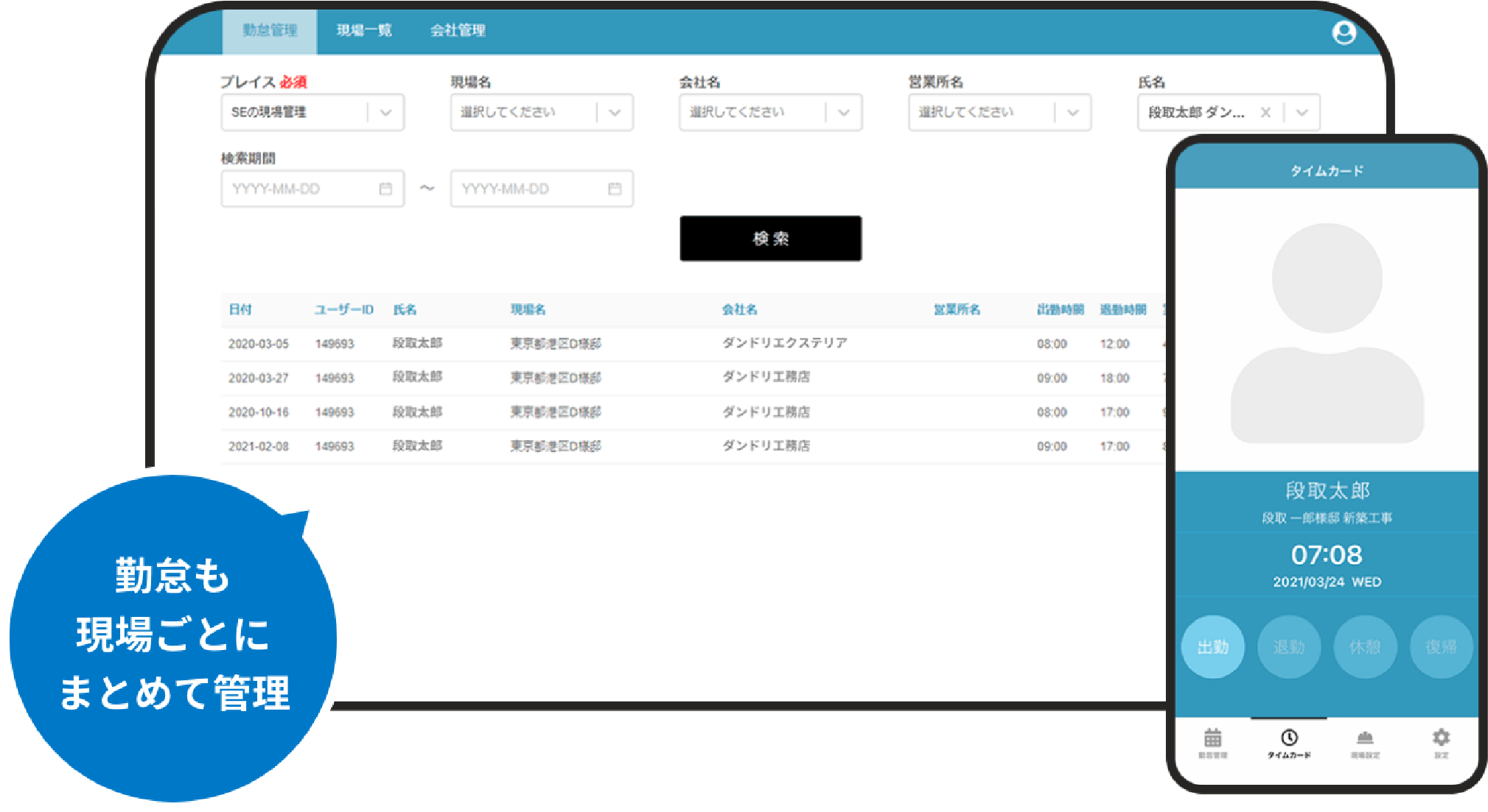 現場ごとの勤怠管理を簡単に