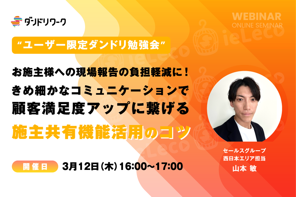 本勉強会では「施主共有機能(いえレコ)」の基本的な使い方から、オリジナリティ溢れる活用事例なども合わせてご説明します。